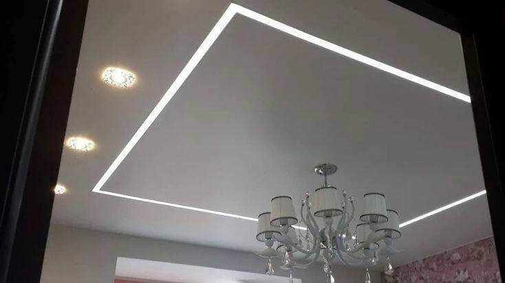 سقف ساده لابل با نورپردازی لاین نوری دیواری، لوستر و لاین نوری وسط