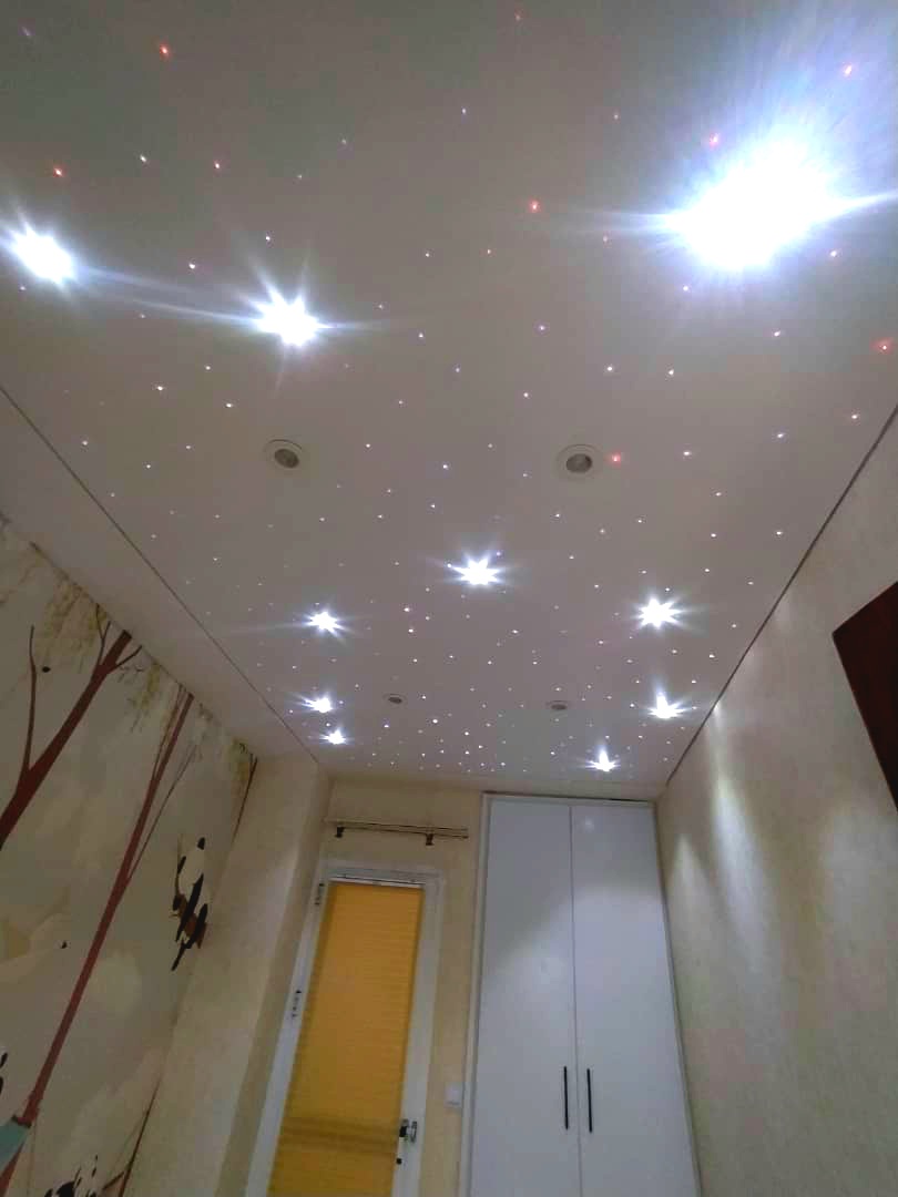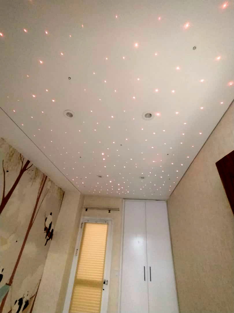سقف لاکر با نورپردازی لوستر در اتاق خواب