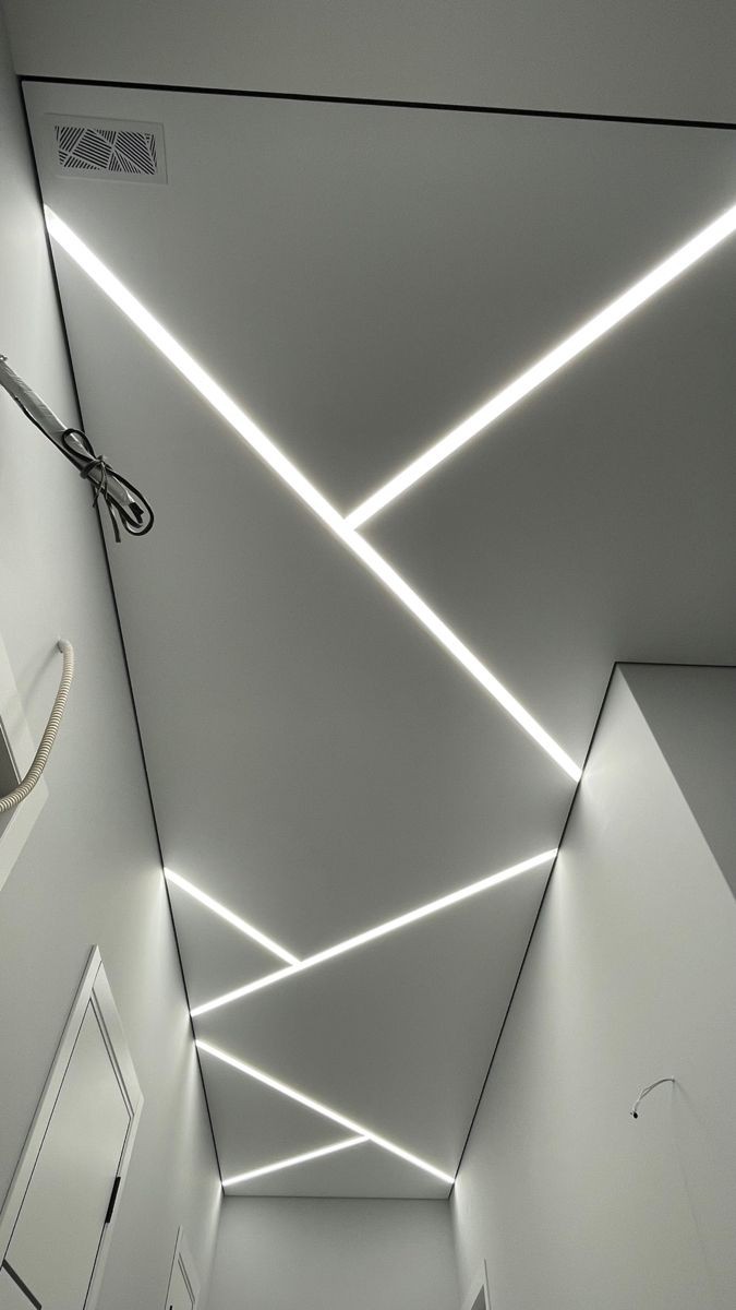 سقف ساده لابل با نورپردازی لاین نوری دیواری، لوستر و لاین نوری وسط