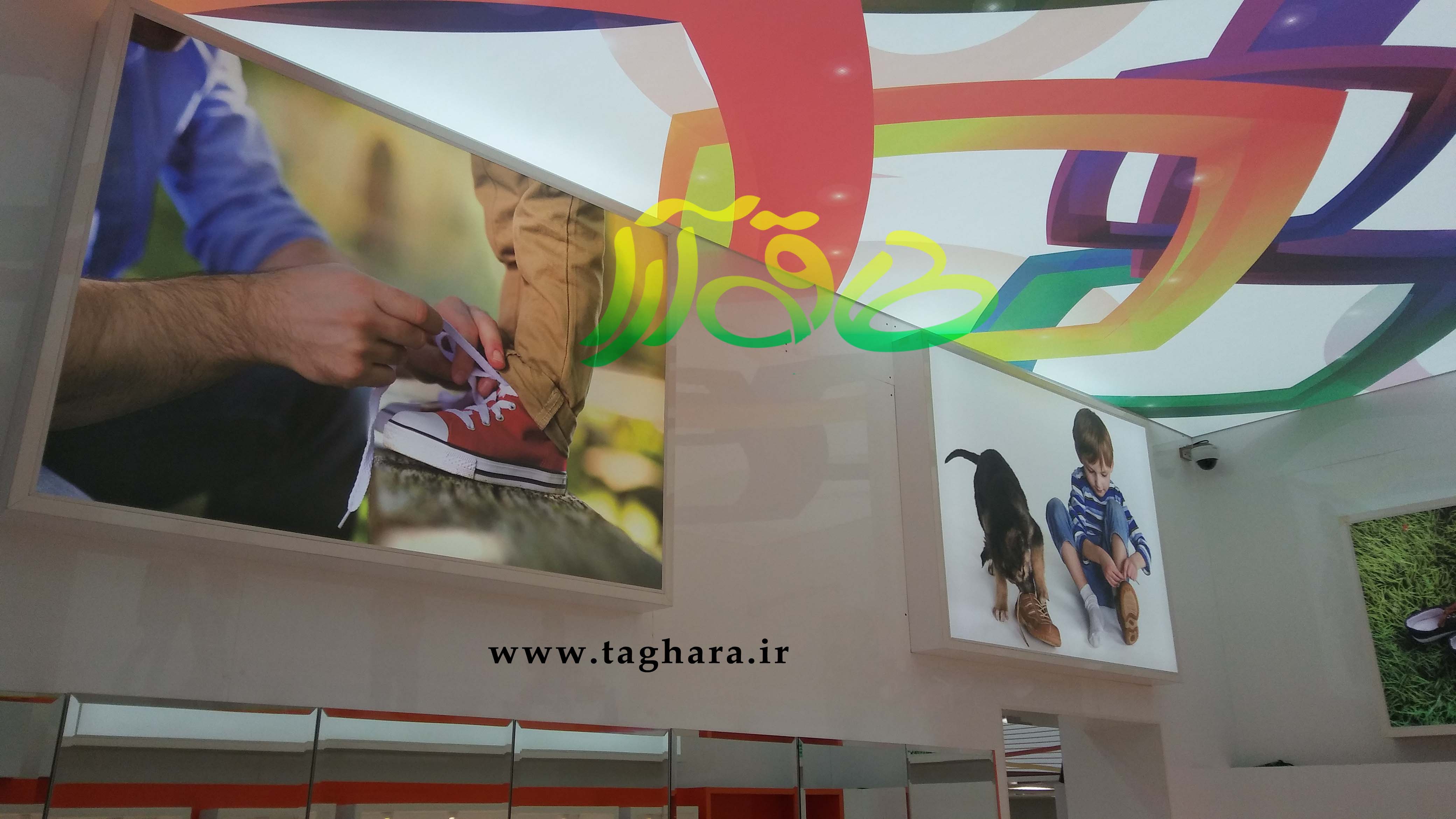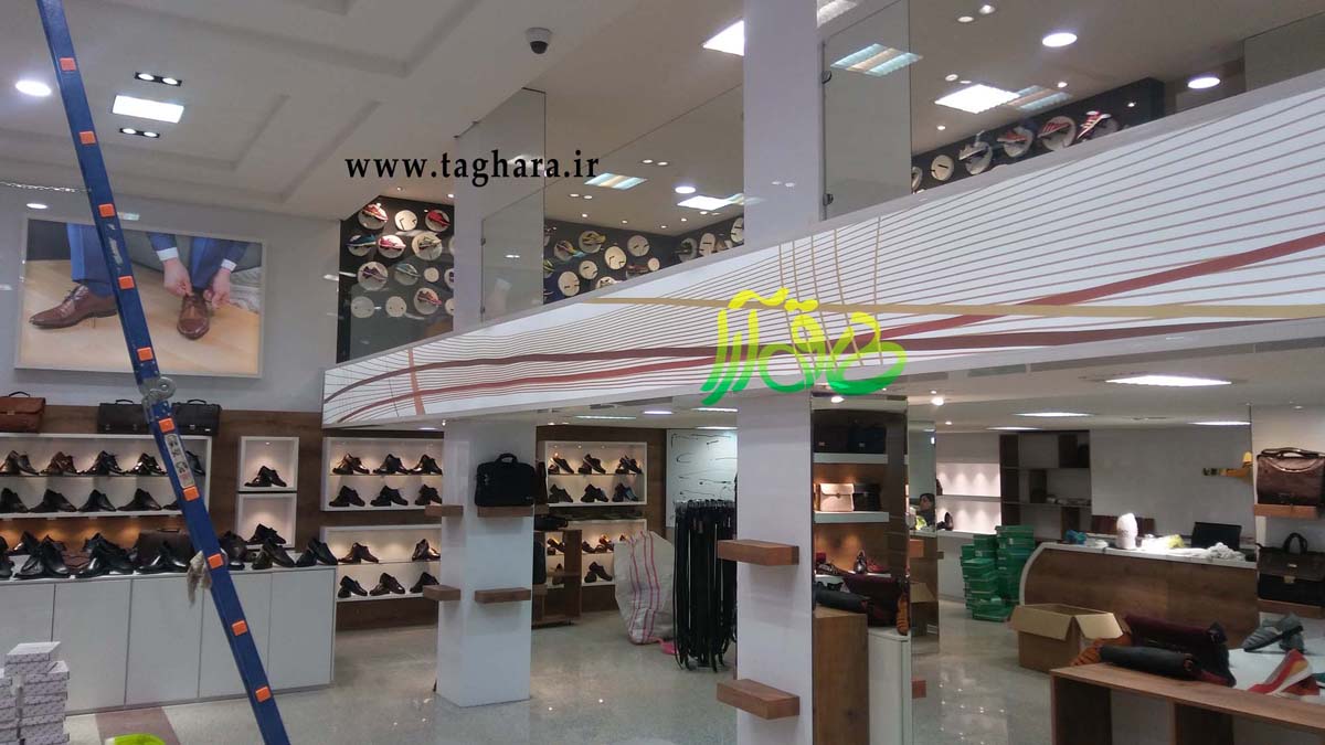 اجرای سقف لاکر با نورپردازی لوستر در کافه نان ساری